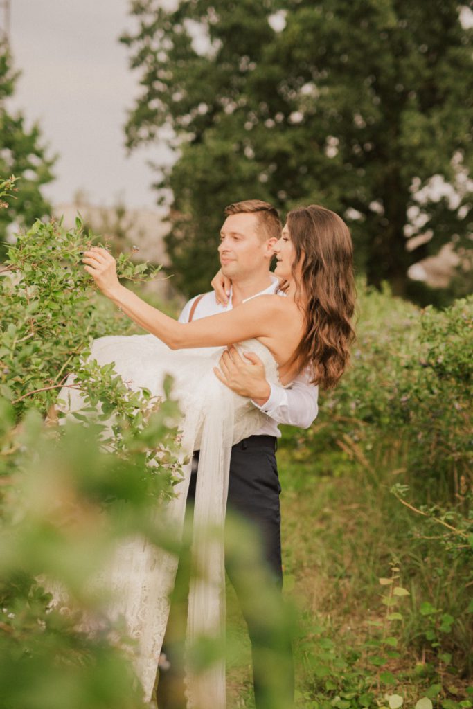 Ślub w plenerze rządzi się swoimi prawami – możecie pozwolić sobie na swobodniejszą atmosferę, oraz atrakcje na świeżym powietrzu. Kamilę i Marka zabraliśmy do wyjątkowego miejsca – Borówkowe Domki, jak nazwa wskazuje mają przepiękne plenerowe zaplecze w postaci pól z krzaczkami borówek! Czy na letni, upalny dzień jest lepszy pomysł? Sądzimy, że nasze owocowe wesele będzie w czołówce!