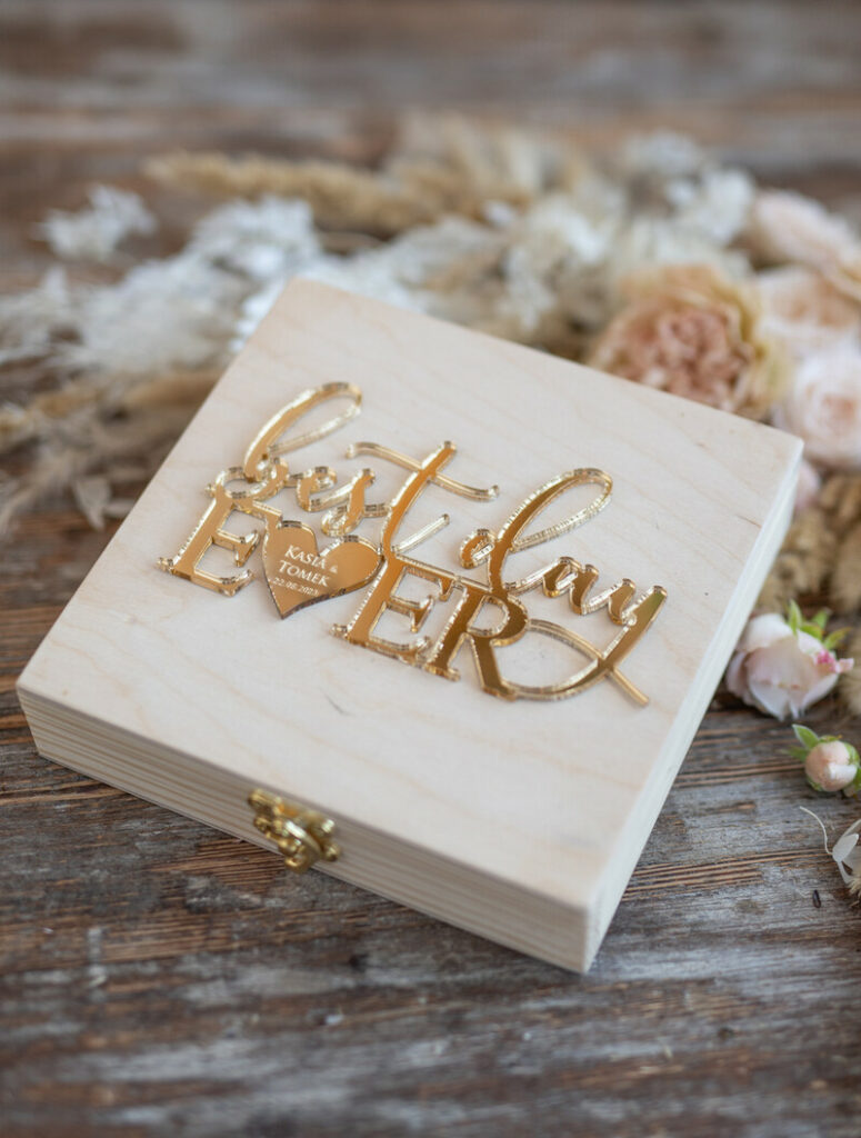 Zaproszenie na Ślub dla Taty – drewniane pudełko z treścią w środku Organizacja ślubu to zadanie pełne detali, które trzeba