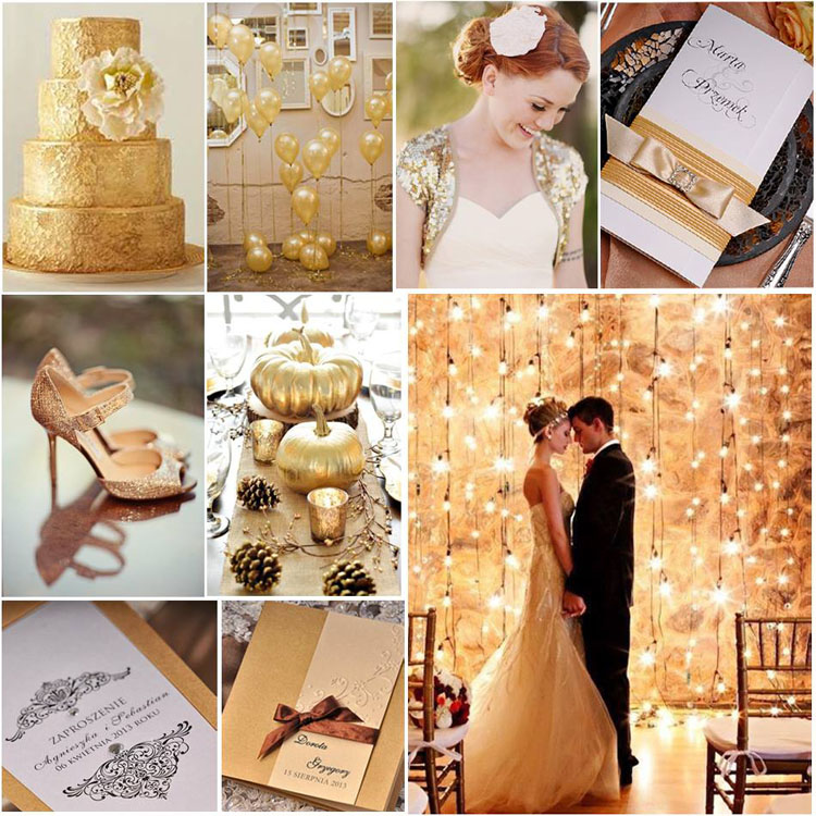 Złoto jako kolor przewodni Ślubu Złoto wraca do łask w każdej postaci-czy to na zaproszeniu ślubnym czy dekoracji. Wydawałby się,