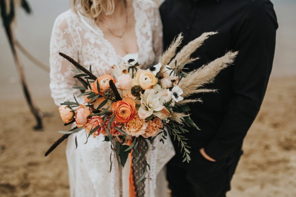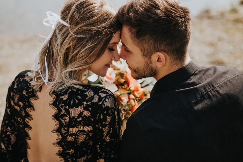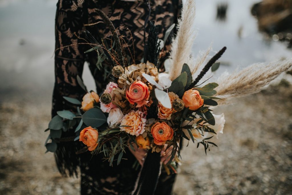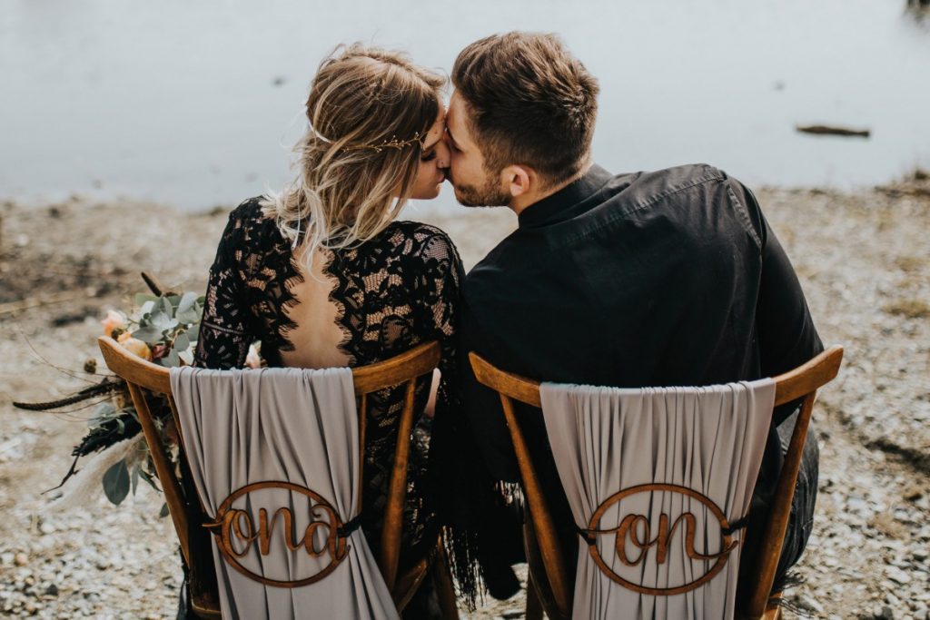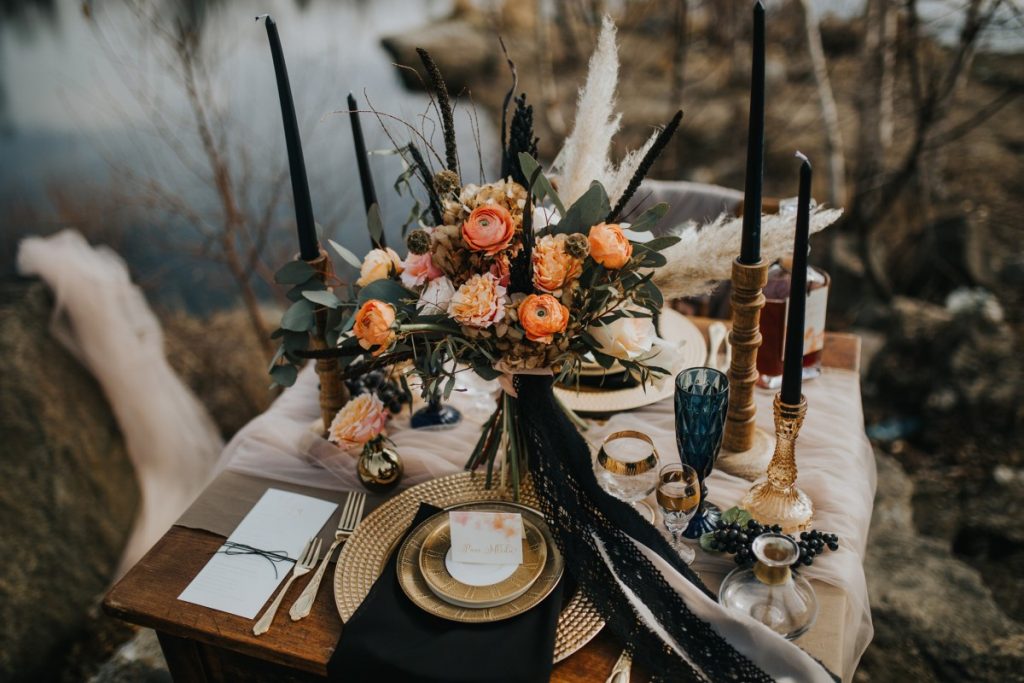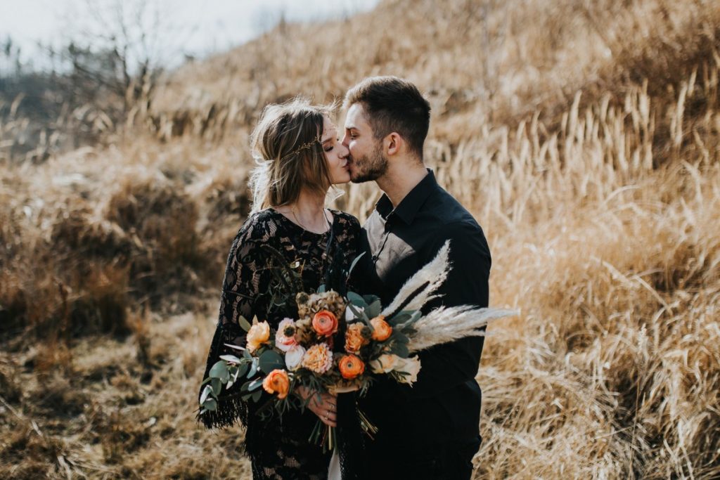 Czarna suknia z koronki autorstwa Marty Trojanowskiej, to pomysł na super odważnych narzeczonych, dla tych które jednak preferują biel mamy drugą stylizację – jednak żadna z nich nie jest standardowa – obie suknie w stylu boho, połączono z nieoczywistymi dodatkami takimi jak botki i oversizowa marynarka.