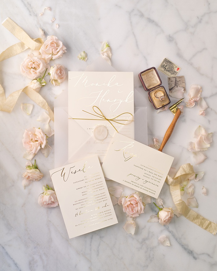 Przezroczyste zaproszenia ślubne to gorący trend ślubny – dlatego z przyjemnością wykonaliśmy to zaproszenie weselne do sesji zdjęciowej. Dwie przepiękne
